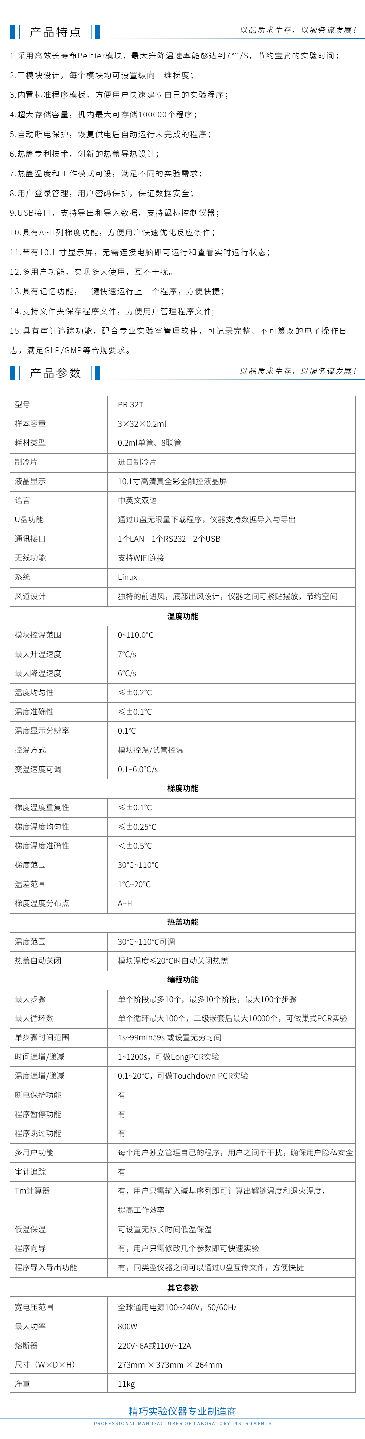 产品描述:本PCR仪采用Linux操作系统,匹配10.1英寸电容式触摸屏,操作简单流畅,数据显示精准快速;前后式进风道,底部出风,仪器可以并排放置,节约空间;采用高效长寿命Peltier制冷片,升降温速度快,节约宝贵的实验时间;三组独立样品台可同时开展三个不同的实验,真正实现“一机多用”。